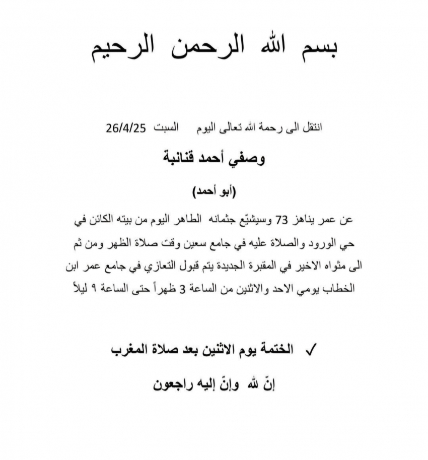 السبت 25 ابريل 2026 12:15 م بتوقيت القدس